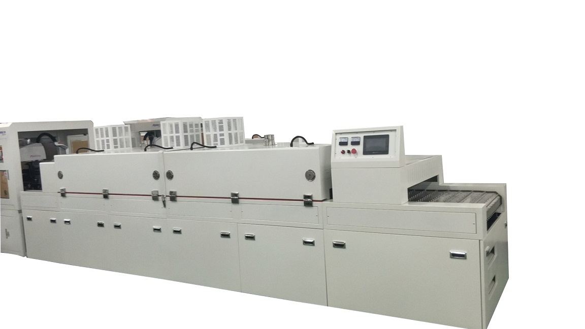 輸送部分:采用特氟龍網(wǎng)帶輸送,可耐溫220度, 輸送速度1 -5M/MIN變頻調(diào)速)